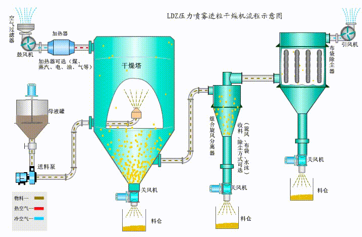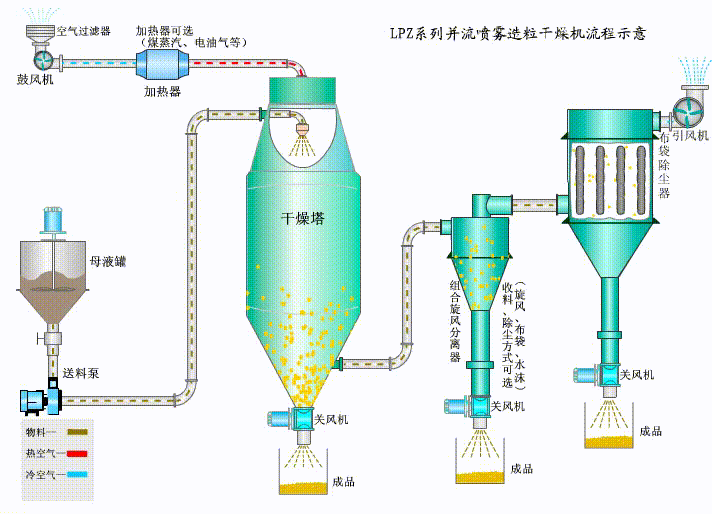 3、使用范圍廣,可進行熱風干燥、造粒、也可以進行冷卻造粒、噴霧結(jié)晶、噴霧反應等;